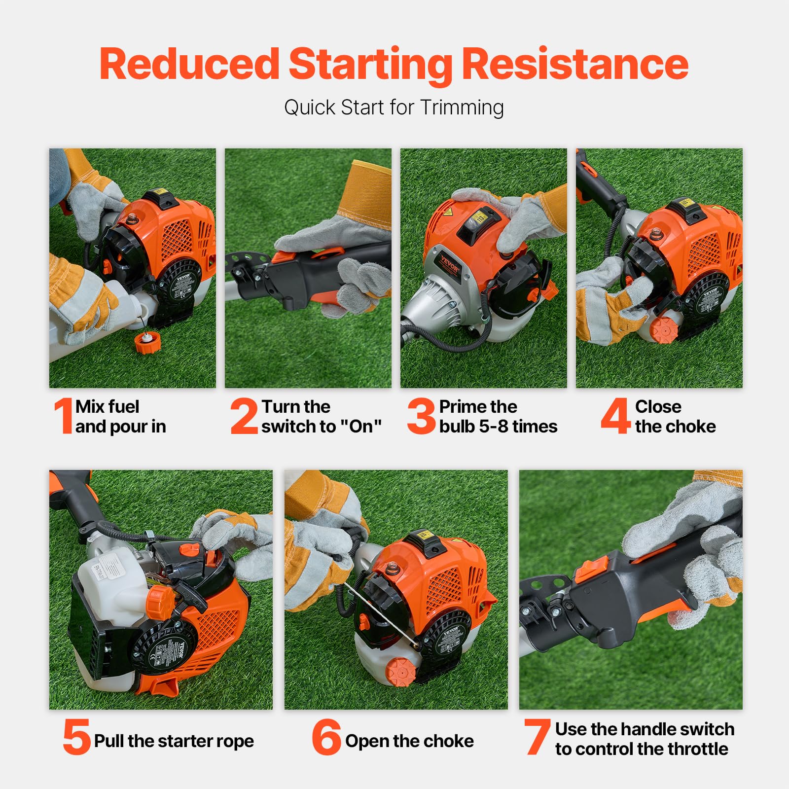 - Easy Start, Safe and Comfortable: Equipped with a high-safety throttle guard to prevent accidental starts, this weed wacker features a 550ml fuel tank that reduces refueling frequency. The 40:1 fuel mixture ensures smooth operation and minimizes starting resistance.
