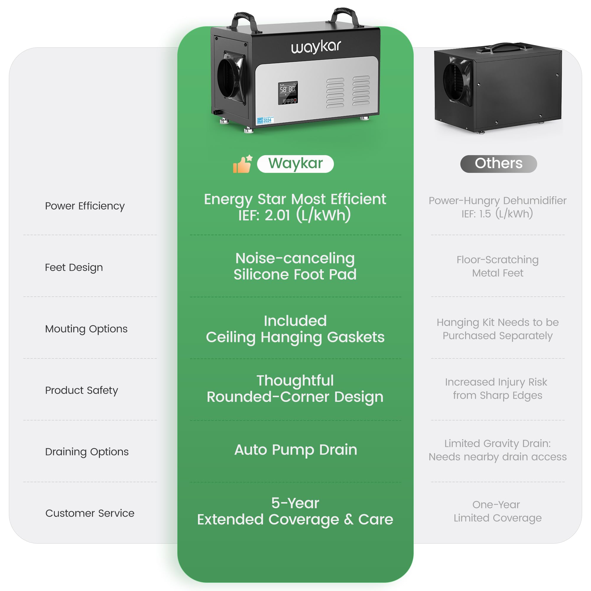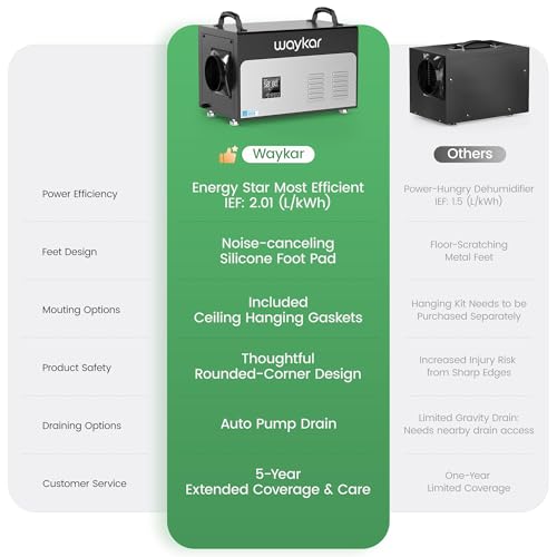 180 PPD Smart WiFi Commercial Dehumidifiers with Pump, LGR Dehumidifier for Crawl Space, Basement, Large Space