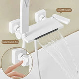 Enhance the look of your bathroom with our sleek and modern Bathtub Faucet & Shower Set. This stylish set is available in two classic colors, White and Black, to suit any bathroom decor. The Waterfall design adds a touch of elegance while the Hand-held Shower provides convenience and versatility. Upgrade your bathroom with this simple yet stunning set today.