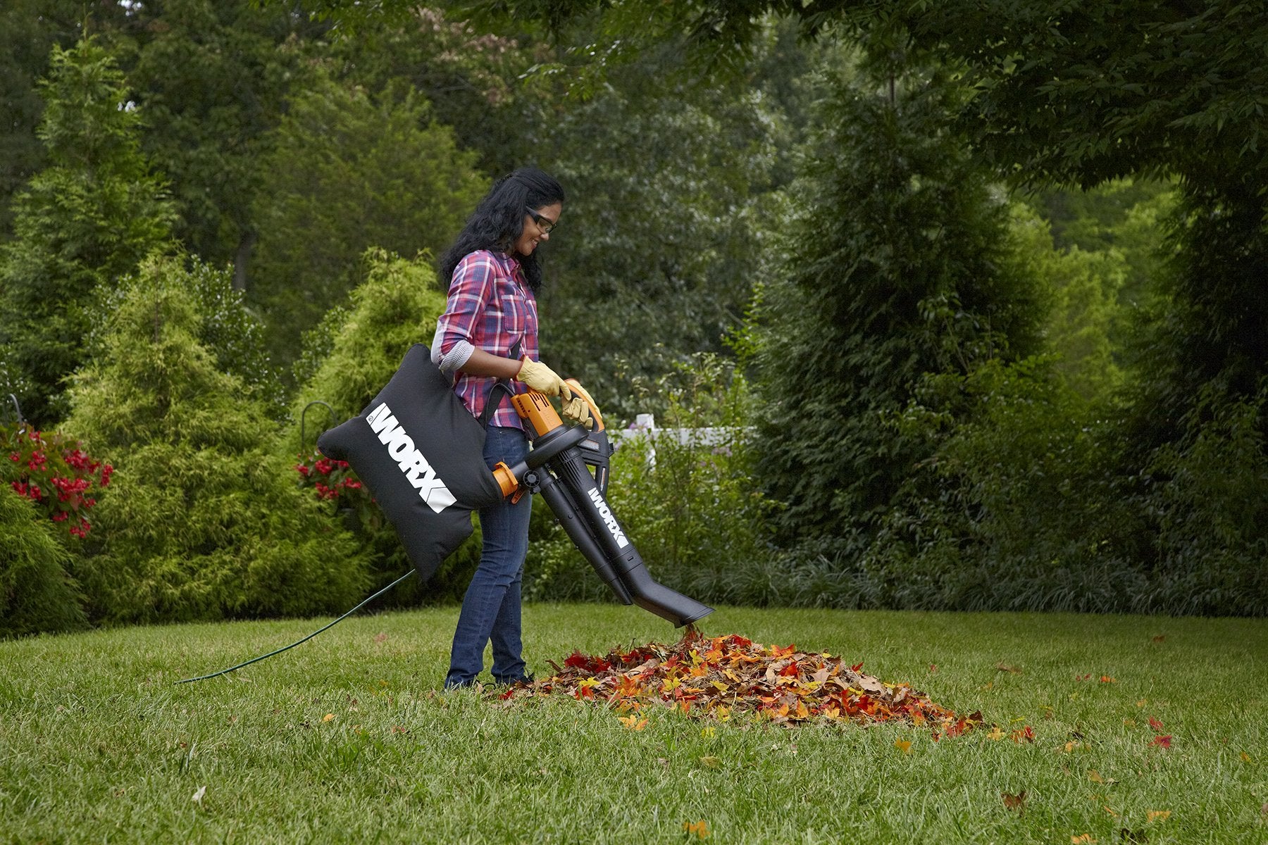 The sturdy metal impeller efficiently mulches leaves at 18:1 ratio, allowing your bag to collect more leaves and reducing emptying time. The leaf vacuum with bag holds 1.2 bushels of mulched leaves for convenient disposal. The shoulder strap of the collection bag allows you to wear it as a backpack to work without getting worn out.