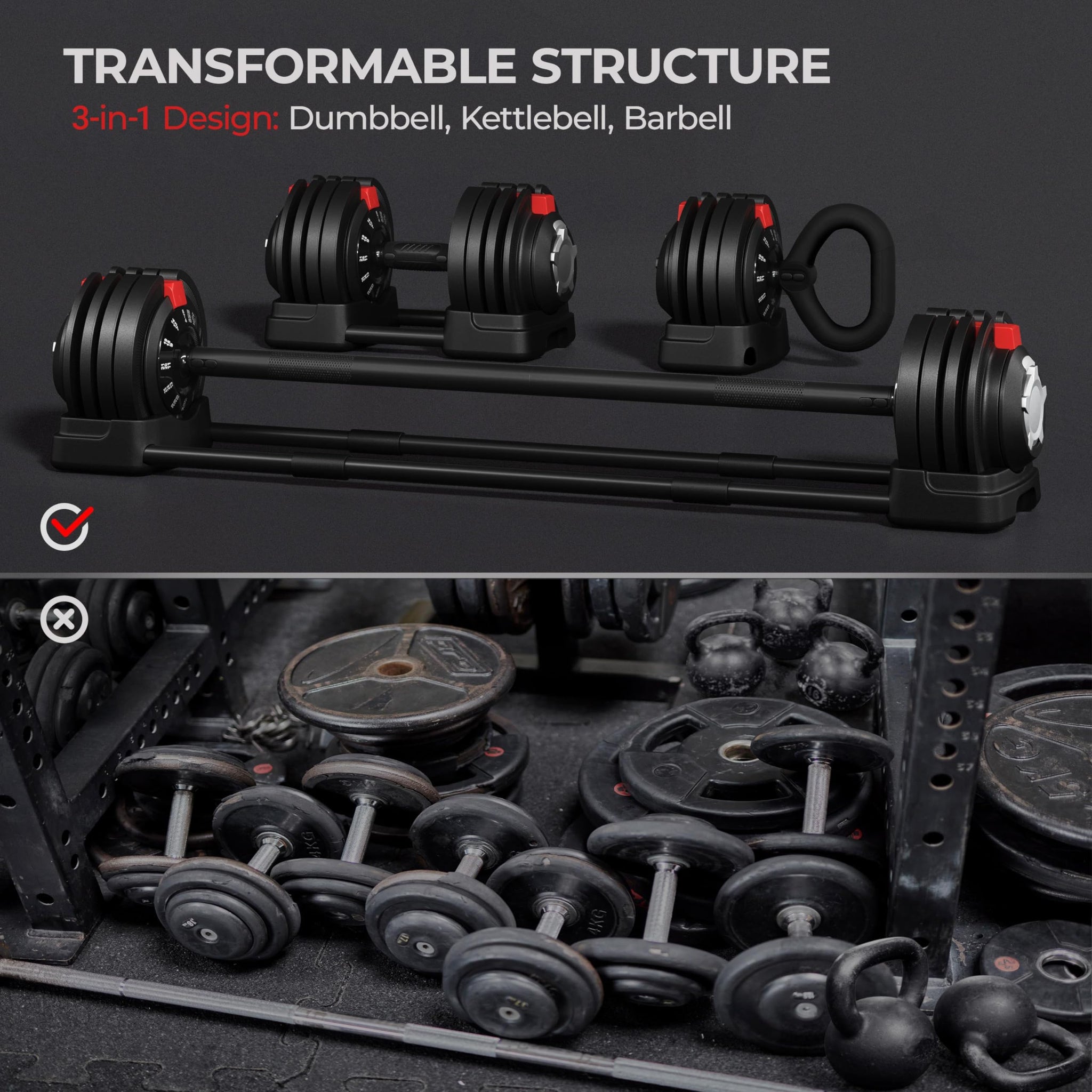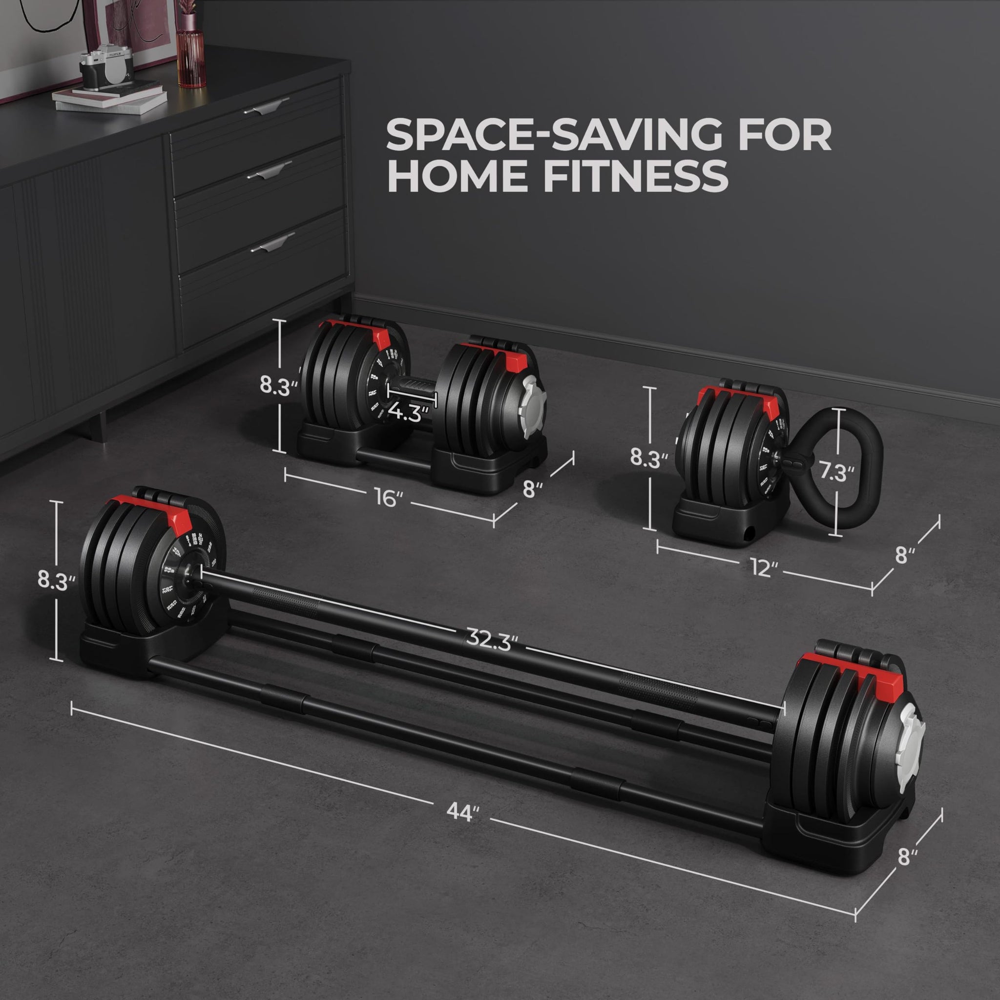 - 🏋️♂️Compact & Versatile Fitness Solution: With small footprint of just 16″ L × 8″ W × 7.5″ H, this 3-in-1 dumbbell weight can be conveniently stored under a workout bench or on a garage shelf, enhancing adaptability and portability for quick fitness sessions in various settings.