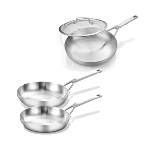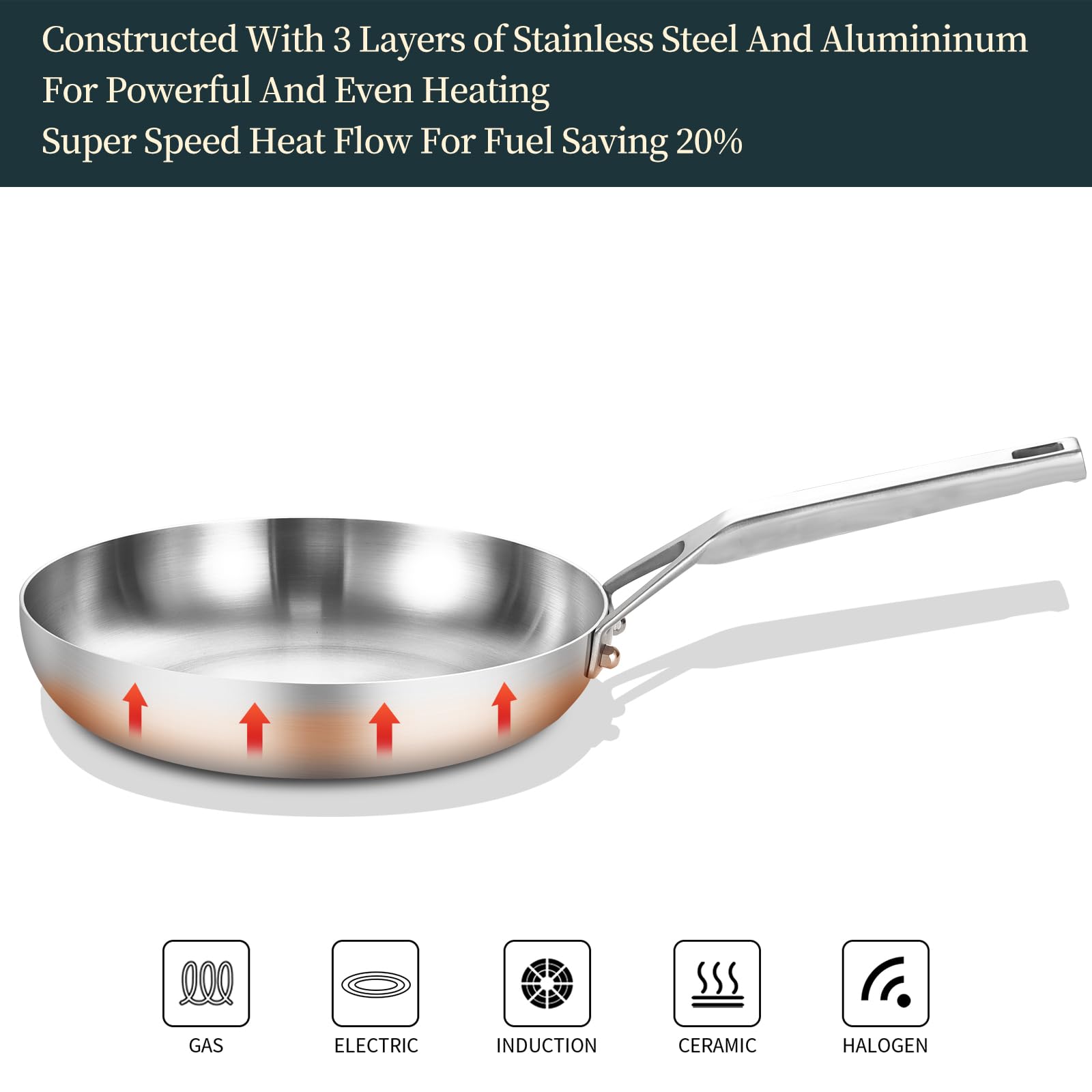 - ✅【Built for Durability】 Tri-ply construction made with a responsive aluminum core pressed together with 2 layers of durable stainless steel all the way around the surface, for fast and even heating,Super speed heat flow for fuel saving 20%