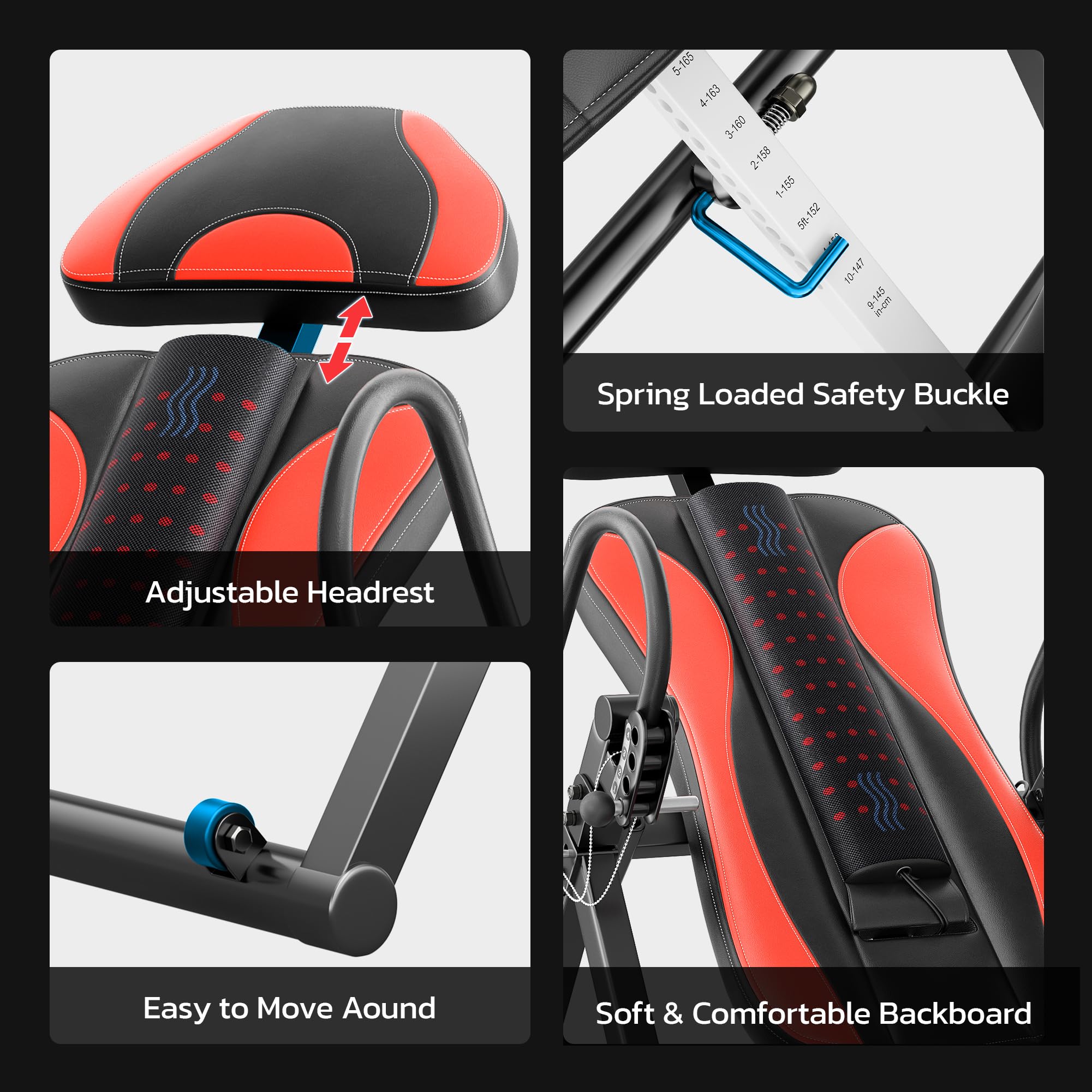 YOLEO Inversion Table Training Equipment Massage & Heat Inversion Table ITM280 Back Pain Relief Equipment w/Remote Control, Reversible Ankle Holders, Heavy Duty up to 320lbs (Red)